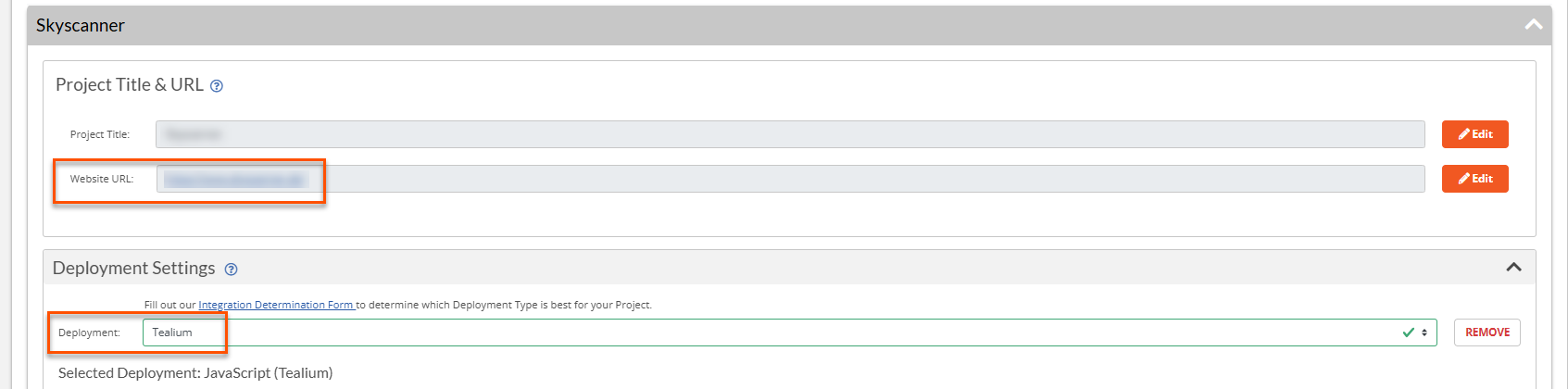 Log into your Schema App account and open the Project Settings for domain you are looking to integrate on. Confirm the website URL is correct, and that the Deployment selection is set to Tealium.