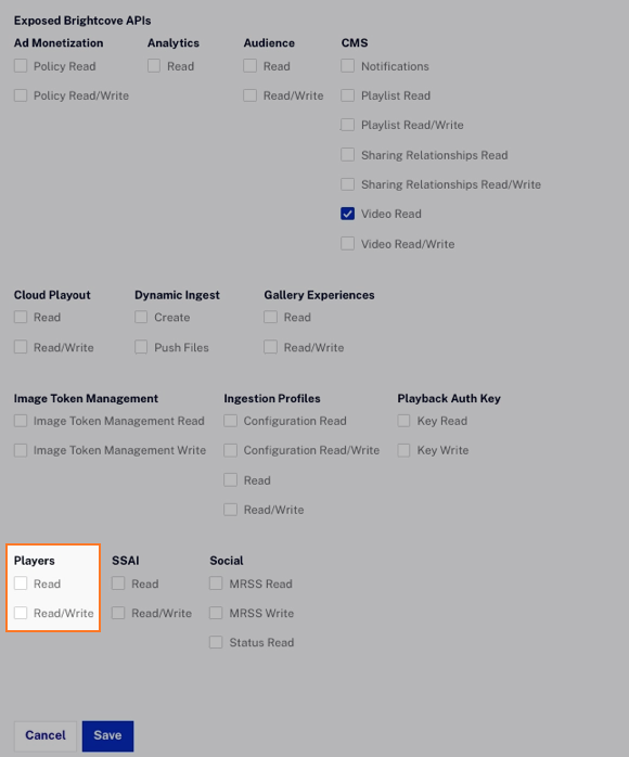 - Ensure that you include the Players API and permissions for "Read" and "Read/Write"